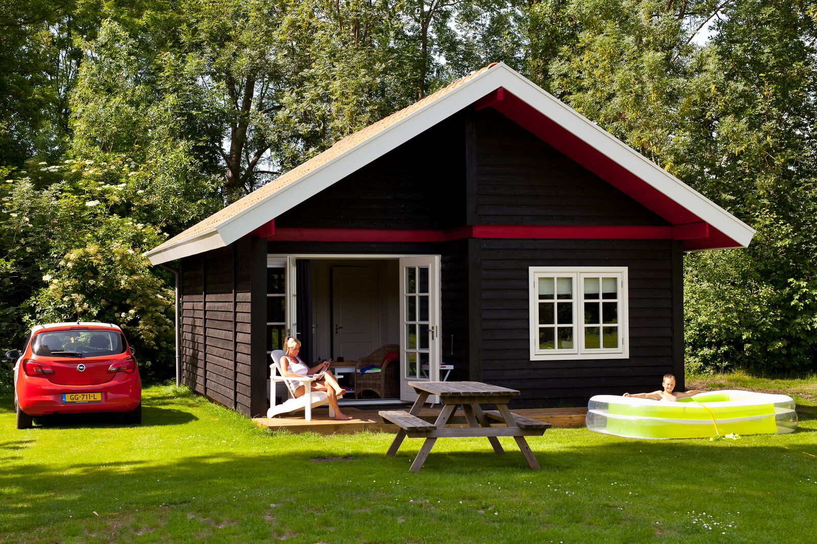 Een knusse vakantiewoning met ruime overkapping, waar je ook onder kunt schuilen als het wat minder zonnig is.
